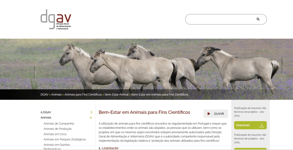Todos os Resumos Não Técnicos de projectos científicos e educacionais que envolvam animais são de consulta pública, quer no site da DGAV, quer na página pesquisável da Comissão Europeia, o ALURES (secção de RNT).