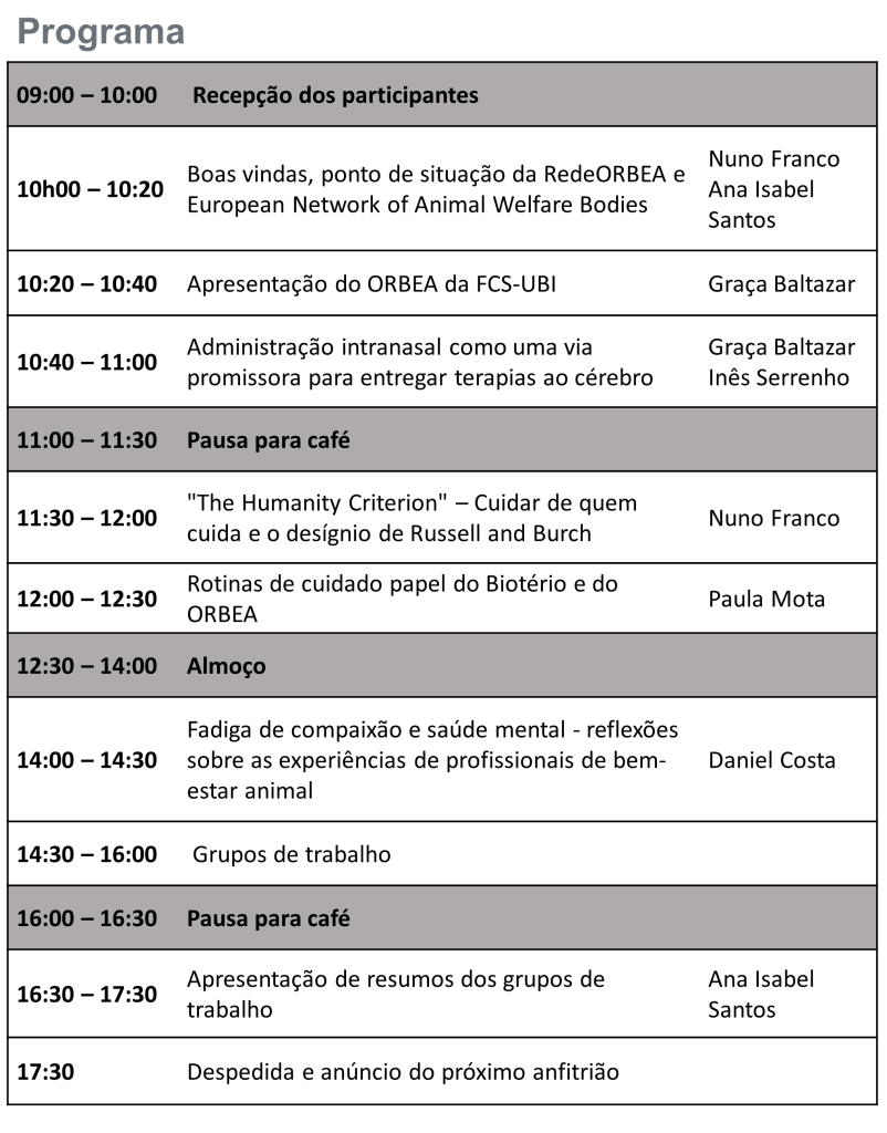 III Simpósio Nacional de ORBEAs, 15 de Novembro de 2018 tendo anfitriões Flávio Reis, Susana Barroso e Paula Mota, dos ORBEAs do iCBR, CNC e ICNAS, da Universidade de Coimbra